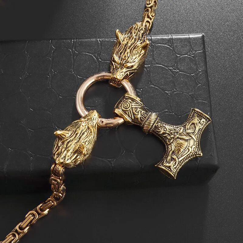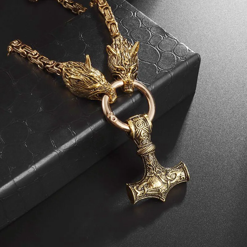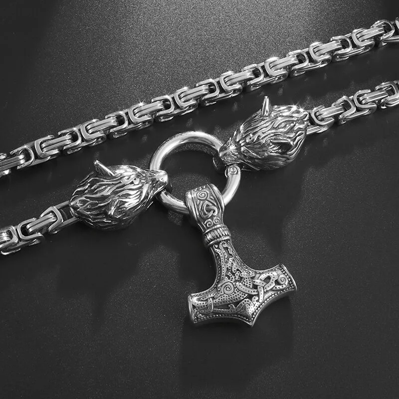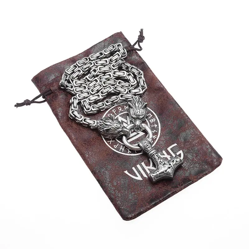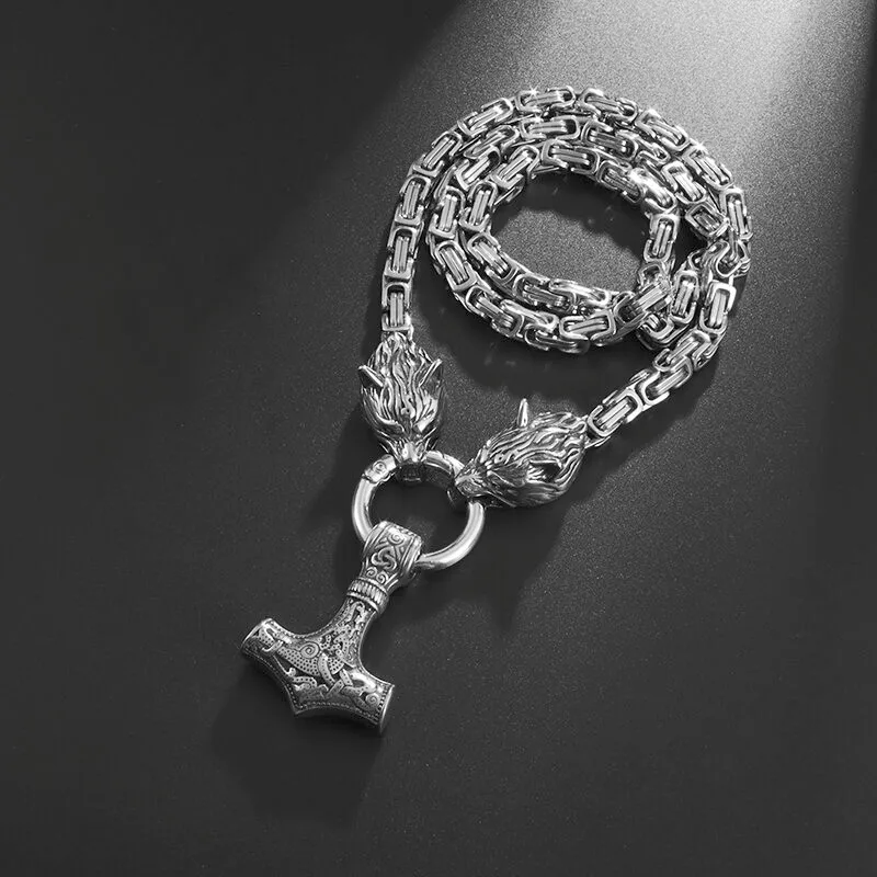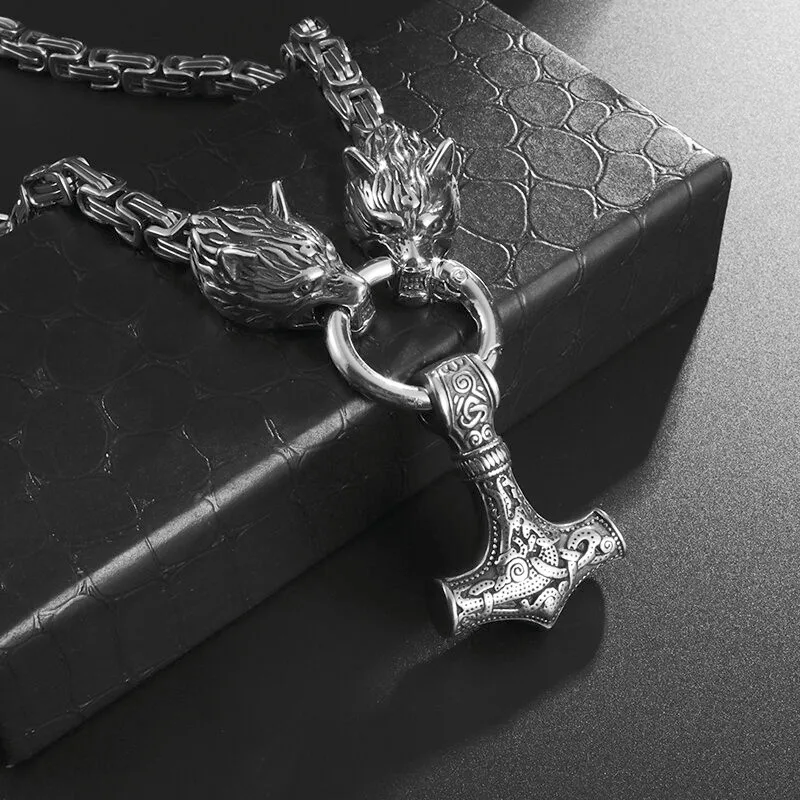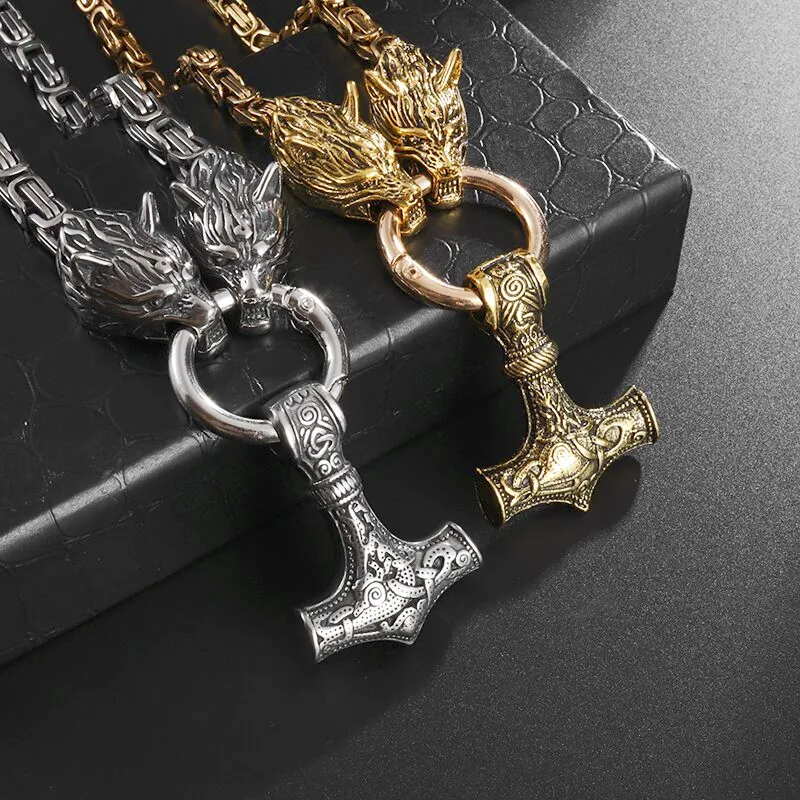 Stainless Steel Nordic Celtic Hammer Pendant Necklace for Men's